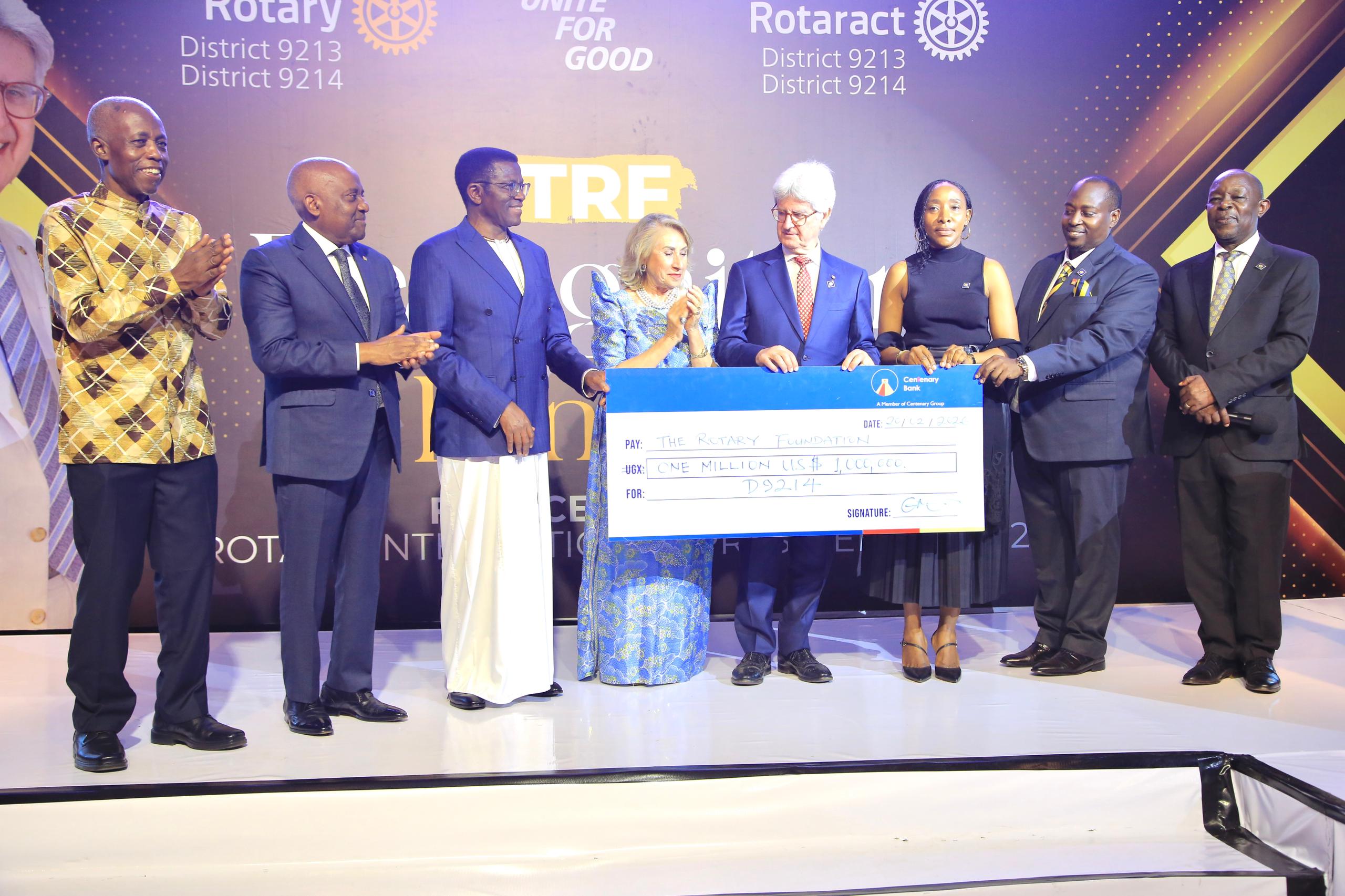 D9213 ne D2914 ziwaddeyo ddoola 1,900,000 okuyambako ku bantu nga omukolo guno gwetabiddwako Pulezidenti wa Rotary mu nsi yonna Mw. Francesco Arezzo, abakungu okuva mu gavumenti ya Ssaabasajja Kabaka n’abantu abalala bangi nnyo.