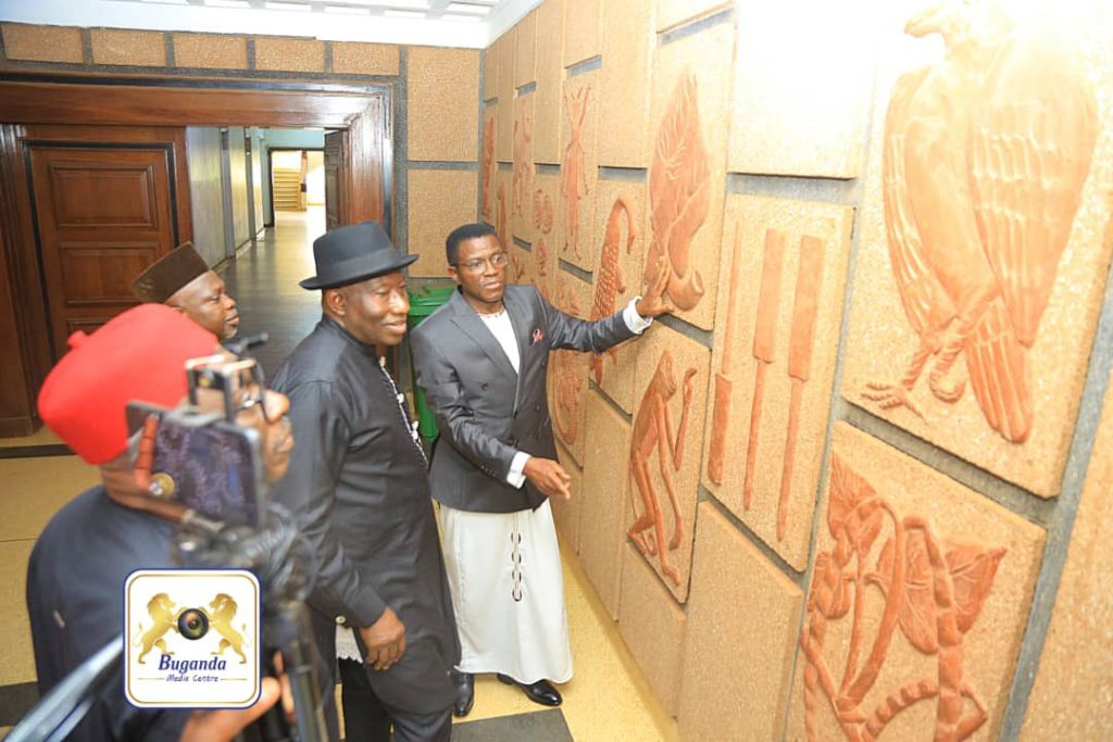 Oluvannyuma Pulezidenti Goodluck Jonathan alambuziddwa Katikkiro ebifo ebyenjawulo okubadde n’ekisenge ky’Olukiiko lwa Buganda wakati mukumuyitiramu ku bitonotono ebikwata ku bintu bino.