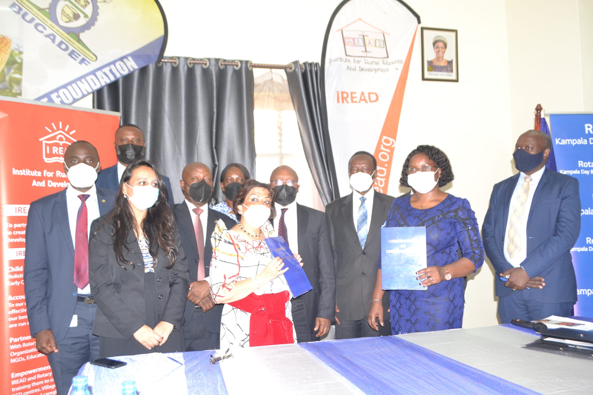 Omukolo gw’okuteeka omukono ku ndagaano eno gubadde mu Bulange- Mmengo era Minisita w’ebyenjigiriza n’embeera z’abantu mu Buganda, Owek. Dr. Prosperous Nankindu Kavuma y’ataddeko omukolo ate May Virji n’assaako kulwa IREAD.